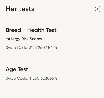 Once you've activated your test kit, you can find your swab code at any time by looking at your dog's profile on your Embark Account.