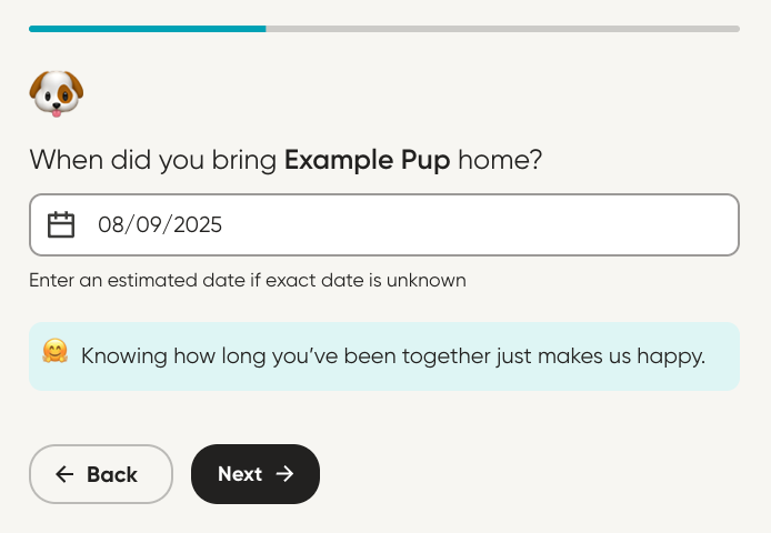 - Follow the prompts to add your dog and create their profile!