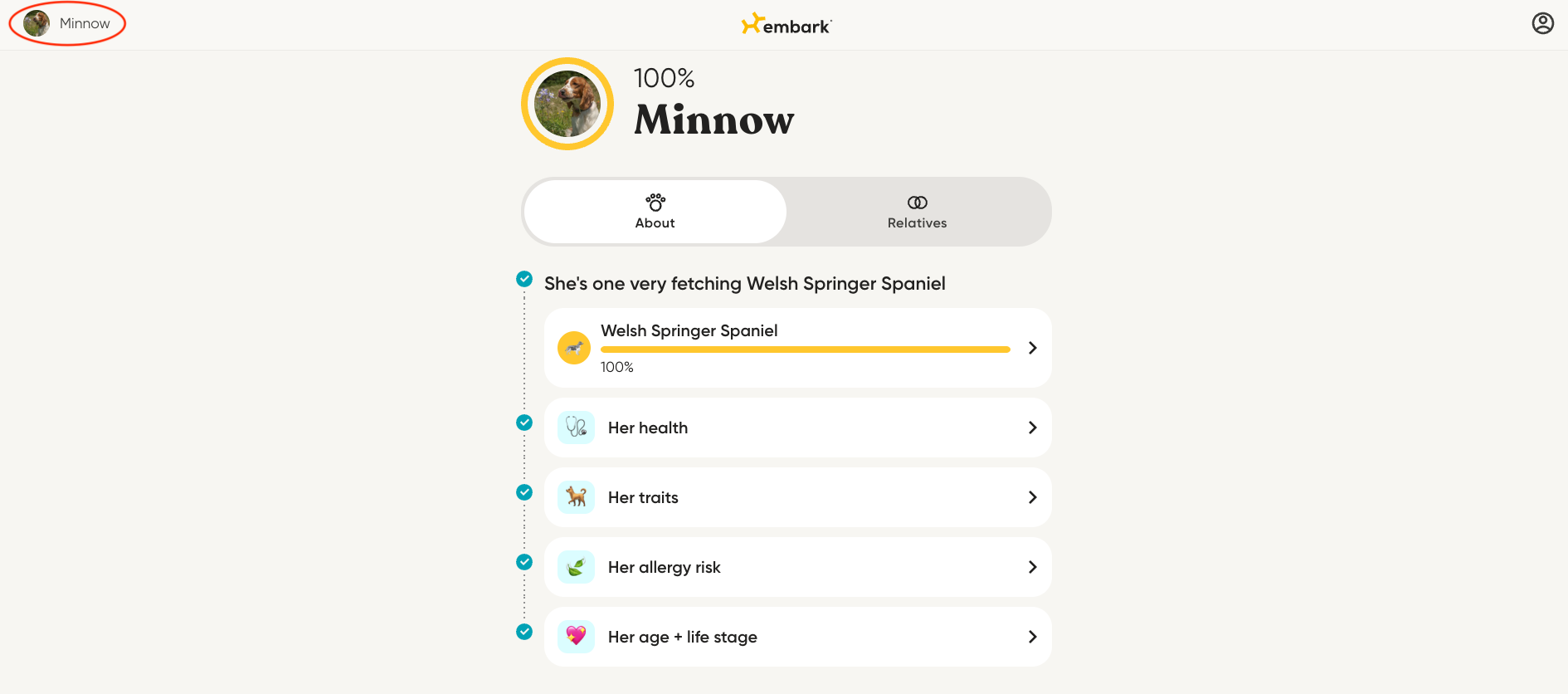 If you have pups on your account already, click on your dog's name in the upper left-hand corner of the screen (circled in red). This will open a panel on the right side of your screen that lists all your dogs.