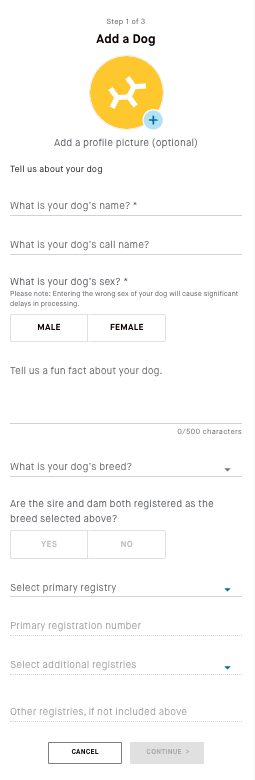 - Select "Add a Dog" link.